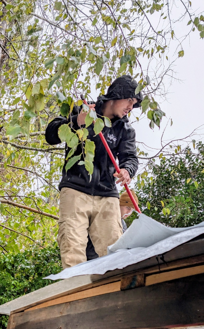 Ce fut une semaine de pluie et de tempête qui nous a donné beaucoup de travail. Sans cesse, nous avons dû constater que les animaux n’étaient pas parfaitement protégés des fortes averses et rafales. Avec l’aide de la « Komuna », nous avons pu corriger beaucoup de choses : ajouter un nouveau toit aux clapiers des lapins, améliorer diverses constructions pour un meilleur écoulement de l’eau et renforcer l’ordre. Je suis très reconnaissant à tous ces jeunes gens de leur aide active – et nous avons eu beaucoup de plaisir à régler tout cela ensemble.